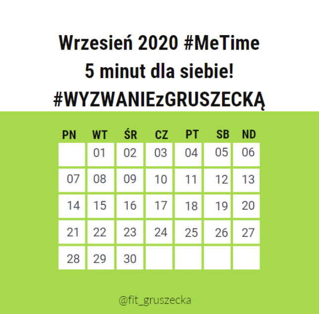 Poniżej przedstawiamy efekty naszych działań nad nowymi formami treści Karoliny. Z naszą pomocą Karolina przeprowadziła swoje wrześniowe wyzwanie w 2020 roku zachęcające użytkowników do znalezienia czasu dla siebie każdego dnia, a także wdrożyła nowe formy treści takie jak przegląd najbardziej polecanych kont i postów na koniec miesiąca czy przepisy w formie graficznej.